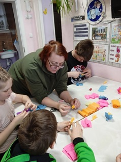 Воспитанники ГБУ СО РК «Центр помощи детям №5» г. Сегежа под руководством инструктора по труду и воспитателей готовятся к великому и светлому празднику – 9 мая. Ребята своими руками изготовили красивые цветы для возложения к Братской могиле. Многие впервые работали с гофрированной бумагой, знакомились с её особенностями, возможностями. Работу выполняли старательно, подбирая цвета и стараясь выполнять все действия аккуратно.