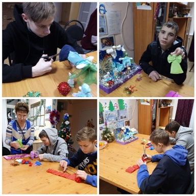 В течение новогодних каникул воспитанники ГБУ СО РК «Центр помощи детям №5» г. Сегежа не только отдыхали и получали подарки, но и занимались творческой деятельностью. Для украшения групп детьми был изготовлен рождественский вертеп и ангелочки.
