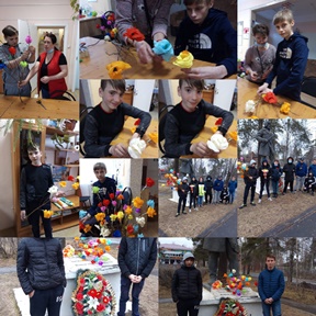 В ГБУ СО РК "Центр помощи детям №5" накануне великого праздника дети и воспитатели изготовили цветы из гофрированной бумаги и украсили ими ветки вербы. Сделанные своими руками букеты торжественно возложили к памятнику "Воин-партизан", почтив память всех погибших на войне солдат.