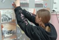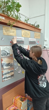 Учащиеся 5-9-11 классов создали коллаж с изображением бабочек, которые символизируют безвинно загубленные души умерших детей, стремящихся к небесам из огня.