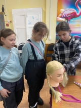 В морозные дни в нашем Центре царит особая творческая атмосфера. После школы девочки с удовольствием погружаются в «Магию прядей» — программа эстетического воспитания под руководством социального педагога С. С. Нецветаевой.