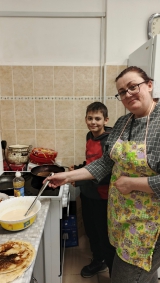 Ребята, посещающие занятия в отделении дневного пребывания ГБУ СО РК "Центр помощи детям №5" г.Сегежа, не остались в стороне от этого веселого праздника. С огромным удовольствием они отметили широкую Масленицу, погрузившись в ее традиции и ответив на вопросы викторины. А что за Масленица без блинов? Конечно же, ребята под руководством педагогов своими руками приготовили вкуснейшие блины, которые стали настоящим украшением их праздника. Это было не только весело, но и очень вкусно!