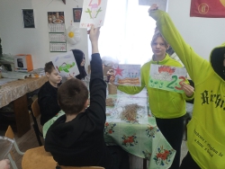 В завершение мероприятия дети передали бойцам на передовую свои рисунки и несколько пар теплых вязаных носков.