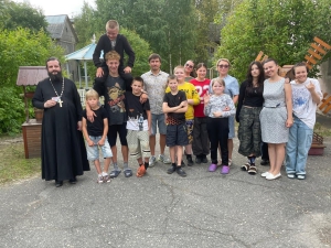 Летом 2025 года Валерий и Елена совместно с настоятелем Покровского храма г. Костомукши отцом Мануилом посетили наш Центр, организовали для детей замечательный праздник со вкусным чаепитием.