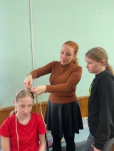Сначала юные мастерицы тренировались на манекенах, вплетая в волосы яркие аксессуары — ДЕ-косы, которые сделали своими руками. А затем пришло время самого ответственного и интересного — перейти к практике на живых моделях! Теперь каждая участница может попробовать создать причёску для своей подружки.