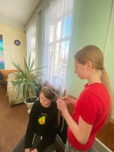 В отделении дневного пребывания в нашем Центре царит творческая атмосфера. Под руководством социального педагога Светланы Сергеевны Нецветаевой девочки осваивают искусство плетения кос.