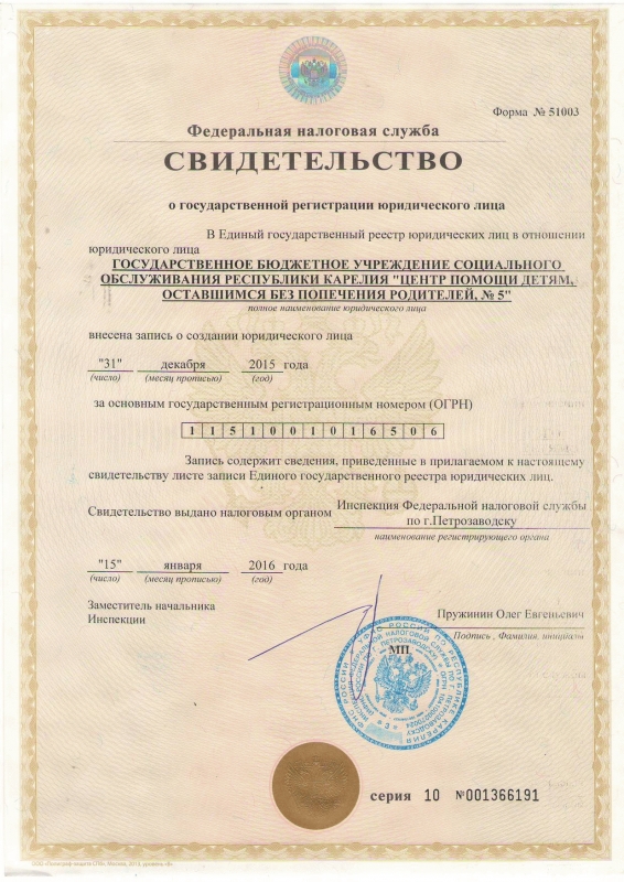 Распоряжение Правительства Республики Карелия от 25.12. 2015 г. № 821р-П о создании ГБУ СО РК «Центр помощи детям №5»