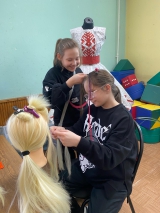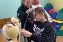 Сначала юные мастерицы тренировались на манекенах, вплетая в волосы яркие аксессуары — ДЕ-косы, которые сделали своими руками. А затем пришло время самого ответственного и интересного — перейти к практике на живых моделях! Теперь каждая участница может попробовать создать причёску для своей подружки.